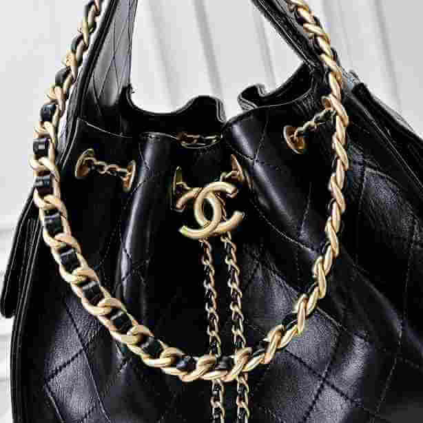 The Chanel 25 Small Handbag in black is a structured and versatile piece from the Spring-Summer 2025 collection. Designed with signature quilted leather and gold-tone hardware, this bag offers a clean, classic look suitable for both everyday wear and evening styling.