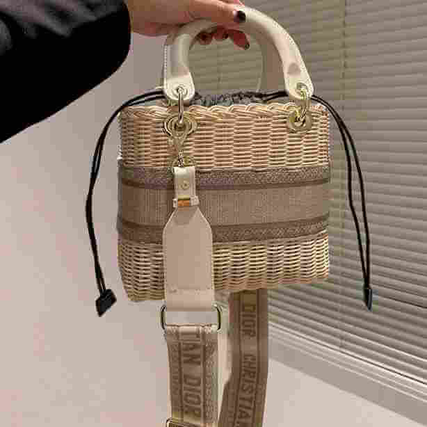The Dior Medium Lady Dior Bag in Natural Wicker Latte combines classic Dior style with natural handcrafted design. Made from handwoven wicker, this elegant handbag highlights the iconic look of the Lady Dior collection while adding a light and modern texture.