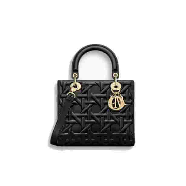 Gold-tone D.I.O.R. charms complete the look and bring subtle shine to the natural wicker body. The medium size provides enough space for daily essentials while maintaining a stylish, compact shape.