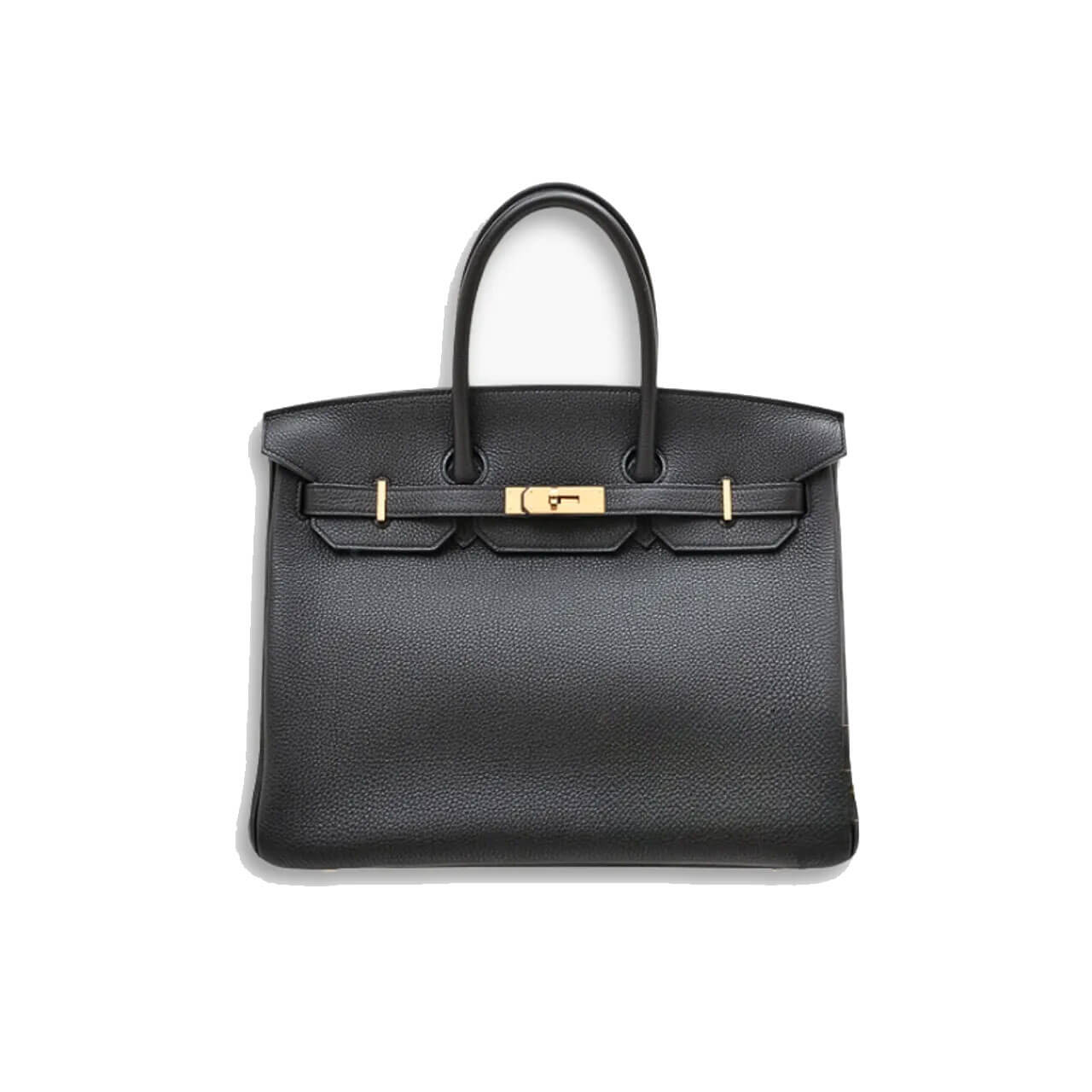 The Hermes Birkin 35 in black Togo leather is a timeless luxury handbag known for its spacious design and classic style. Crafted from textured Togo calfskin leather, this bag offers durability while maintaining the structured Birkin silhouette.