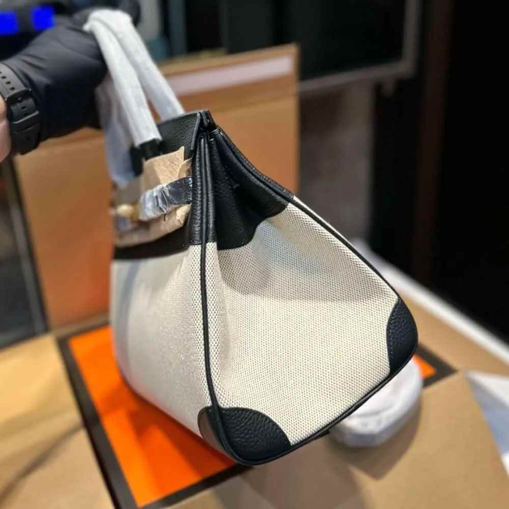 The Hermès Birkin 25 in Toile H and Black is a compact and structured handbag designed for everyday use. It combines durable Toile H canvas with smooth black leather, creating a clean and balanced look.