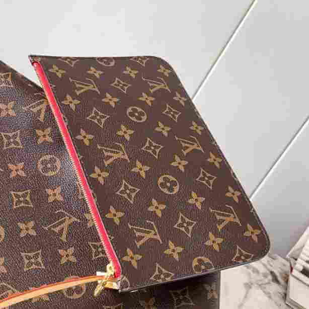 The Louis Vuitton Neverfull MM tote is a practical everyday bag designed with a classic monogram pattern and functional details. Made from coated canvas with natural cowhide trim, it offers a lightweight yet spacious design suitable for daily use.