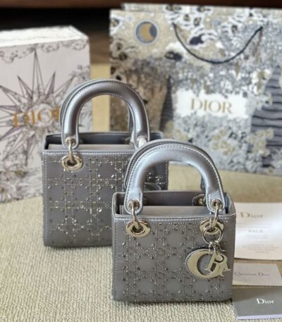 Mini Lady Dior Bag in Grey Strass Satin